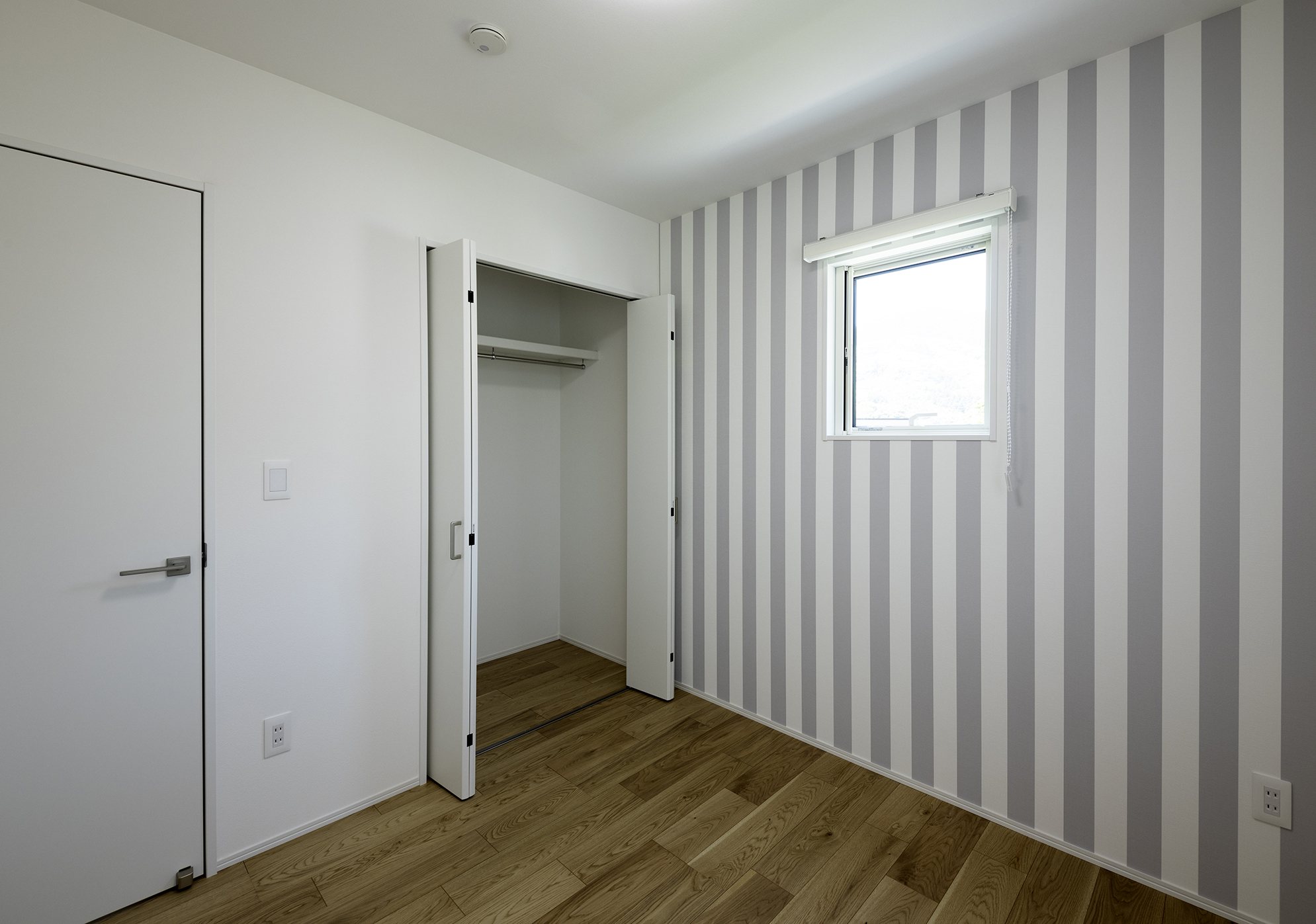 櫛引き調のすっきりとした白のベースに、木目の美しい柄のアクセントで、上品なナチュラルスタイルを演出しています。